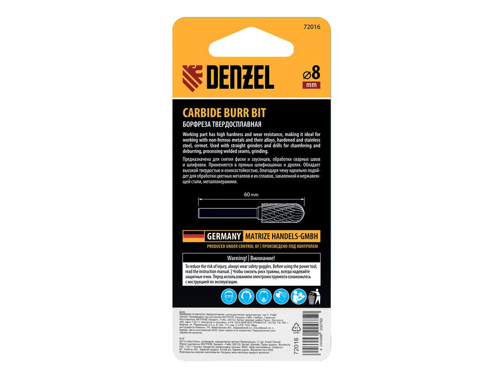 Твердосплавная борфреза Denzel 72016 с цилиндрической закругленной рабочей частью (тип C), диаметром 8 мм, предназначена для шлифовальных работ по металлу: закаленной и нержавеющей стали, латуни, чугуну, бронзе, титану, меди. Также используется для обработки искусственного камня и металлокерамики. Борфреза позволяет зачищать сварные швы, удалять заусенцы и снимать фаски. Форма рабочей части оптимальна для обработки радиусных пазов, поверхностей с плавными изгибами. Также с помощью борфрезы можно быстро и эффективно восстановить гравировку. Оснастка устанавливается на дрель или прямошлифовальную машину.