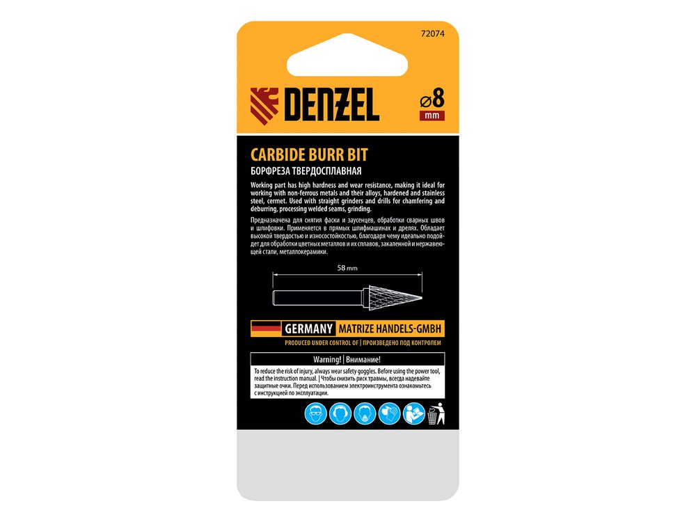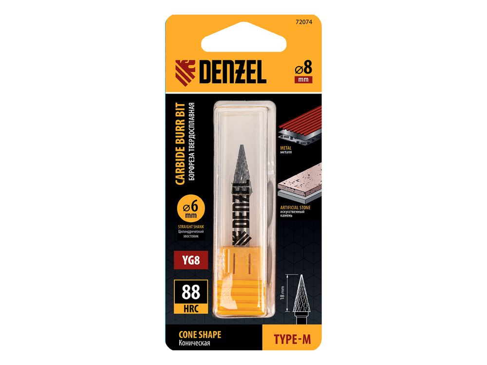 Твердосплавная борфреза по металлу Denzel 72074 с конической рабочей частью (тип M), диаметром 8 мм, — оснастка для дрели и прямошлифовальной машины. Позволяет снимать фаски и удалять заусенцы, идеальна для обработки поверхностей сложной формы, конических отверстий и пазов, а также выполнения точных работ. Подходит для шлифовки деталей из закаленной и нержавеющей стали, чугуна, бронзы, меди, латуни, титана, а также металлокерамики и искусственного камня.