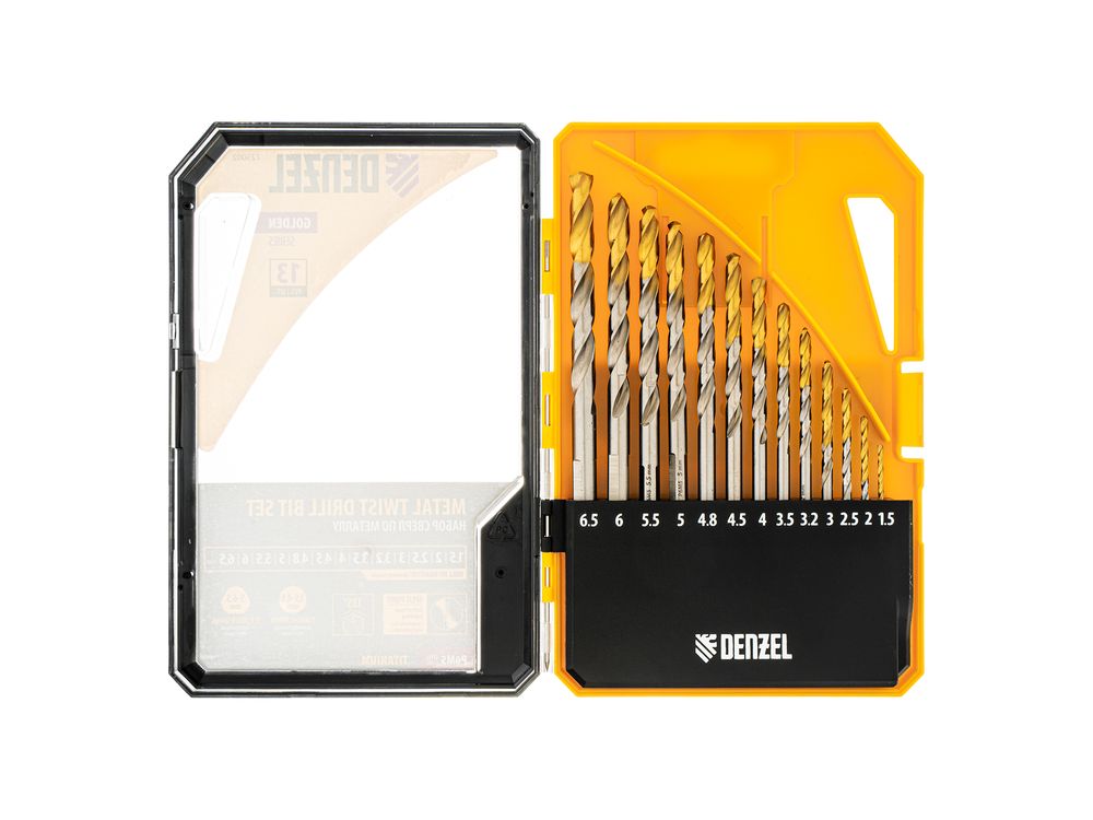 Набор сверл по металлу, 1,5-6,5мм, Р6М5-TiN, Golden Tip, 13 шт