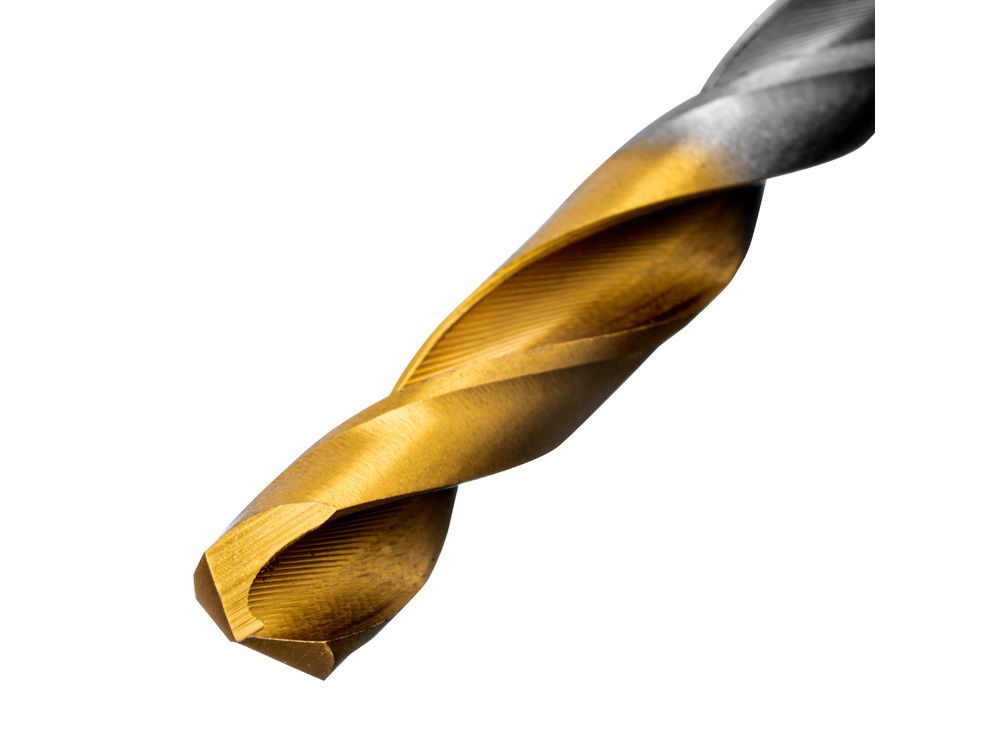 Высокий ресурс — нитридтитановое покрытие уменьшает трение и увеличивает стойкость сверл к нагреву и износу.