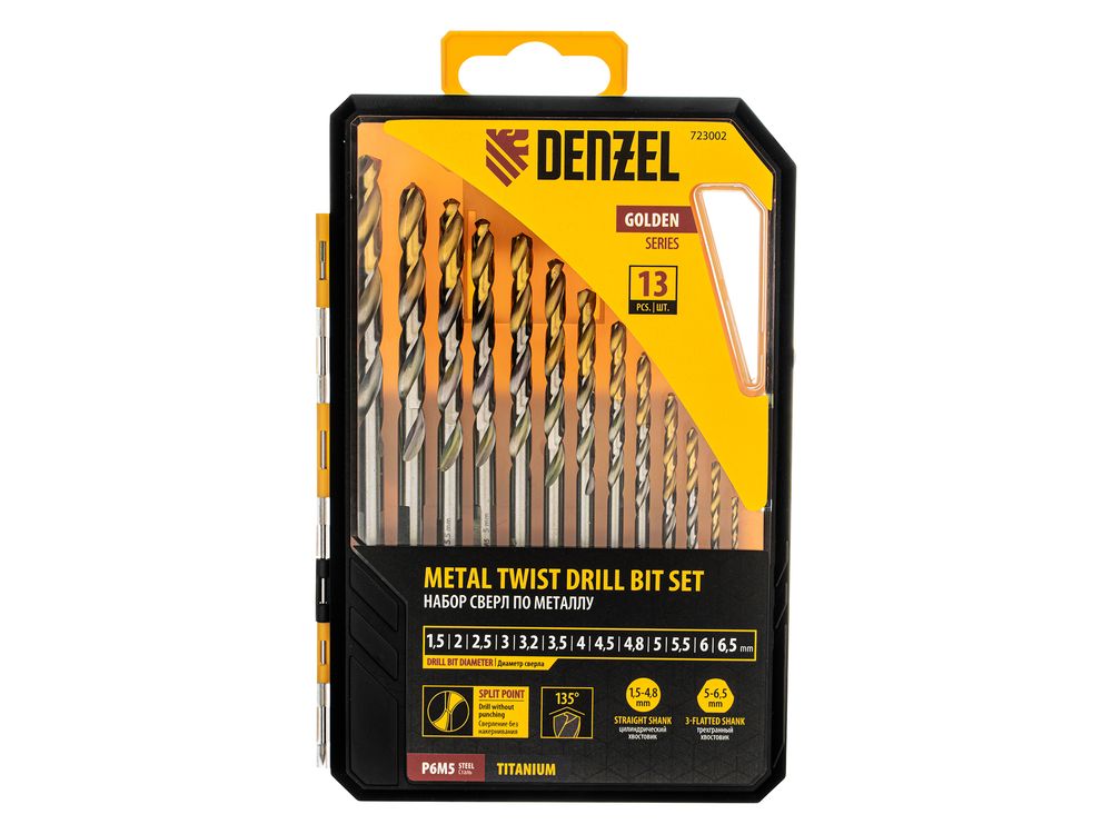 Набор Denzel Golden Tip 723002 состоит из 13 сверл по металлу диаметром 1,5-6,5 мм, изготовленных из стали P6M5. Угол заточки составляет 135°, что позволяет получать чистые и ровные отверстия в нержавеющей стали, чугуне, бронзе, алюминии, а также жестком пластике. Сверлам присвоен класс точности A1, что гарантирует высокое качество выполняемых работ. Оснастка характеризуется пониженным коэффициентом трения, что облегчает сверление и улучшает отвод стружки. Набор будет полезен дома и в мастерской.