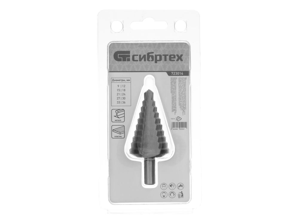 Сверло ступенчатое по металлу, 9-12-15-18-21-24-27-30-33-36 мм, 4241-953