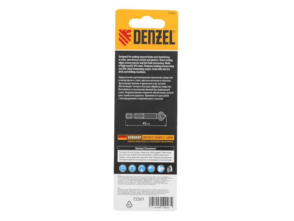 Конусная зенковка Denzel 72301 под болт M3, с 6-гранным хвостовиком, применяется для выполнения конических отверстий и снятия фасок в стали, цветных металлах, древесине и пластике. Устанавливается в патрон дрели или сверлильного станка. Три режущие кромки и идеальные углы заточки 90° обеспечивают точную и быструю обработку отверстий. Оснастка используется во время выполнения слесарных работ.