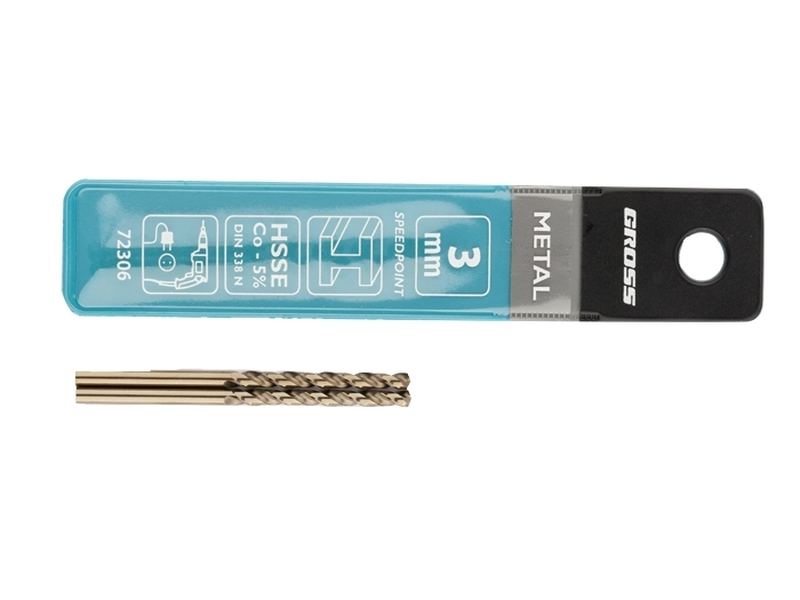 Сверло спиральное по металлу, 3,0 мм, HSS-Co, 2шт.