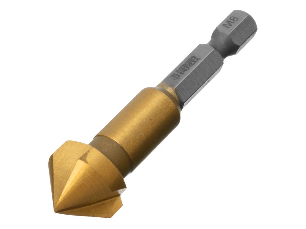 Конусная зенковка Denzel 72308 под болт M8, с 6-гранным хвостовиком, применяется для выполнения конических отверстий и снятия фасок в стали, цветных металлах, древесине и пластике. Устанавливается в патрон дрели или сверлильного станка. Три режущие кромки и идеальные углы заточки 90° обеспечивают точную и быструю обработку отверстий. Оснастка используется во время выполнения слесарных работ.