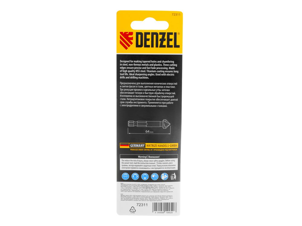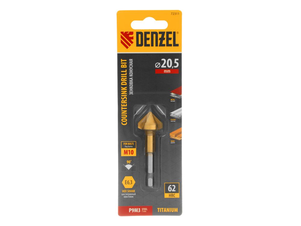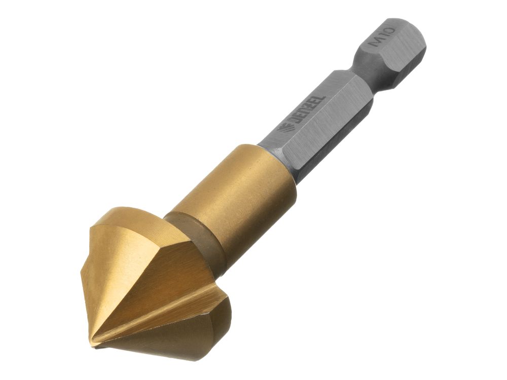 Конусная зенковка Denzel 72311 под болт M10, с 6-гранным хвостовиком, применяется для выполнения конических отверстий и снятия фасок в стали, цветных металлах, древесине и пластике. Устанавливается в патрон дрели или сверлильного станка. Три режущие кромки и идеальные углы заточки 90° обеспечивают точную и быструю обработку отверстий. Оснастка используется во время выполнения слесарных работ.
