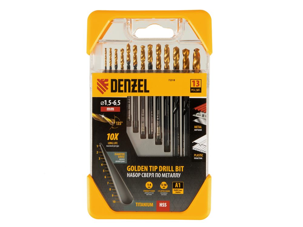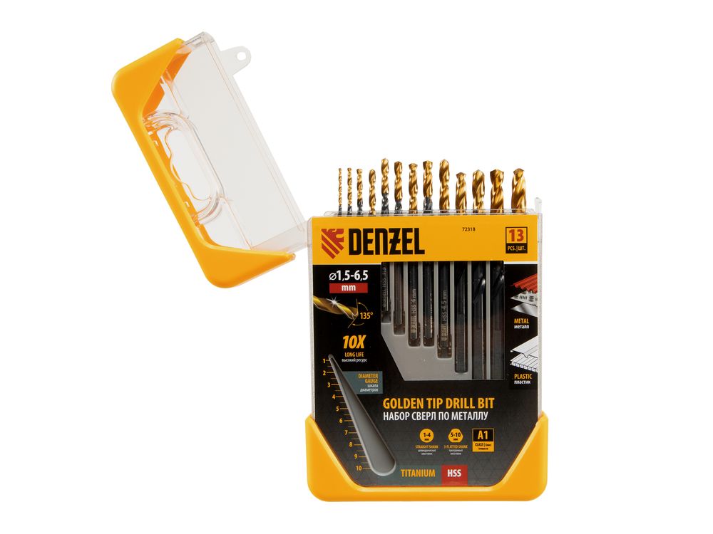 Набор сверл по металлу, 1,5-6,5 мм, HSS-Tin, Golden Tip, 13 шт-424