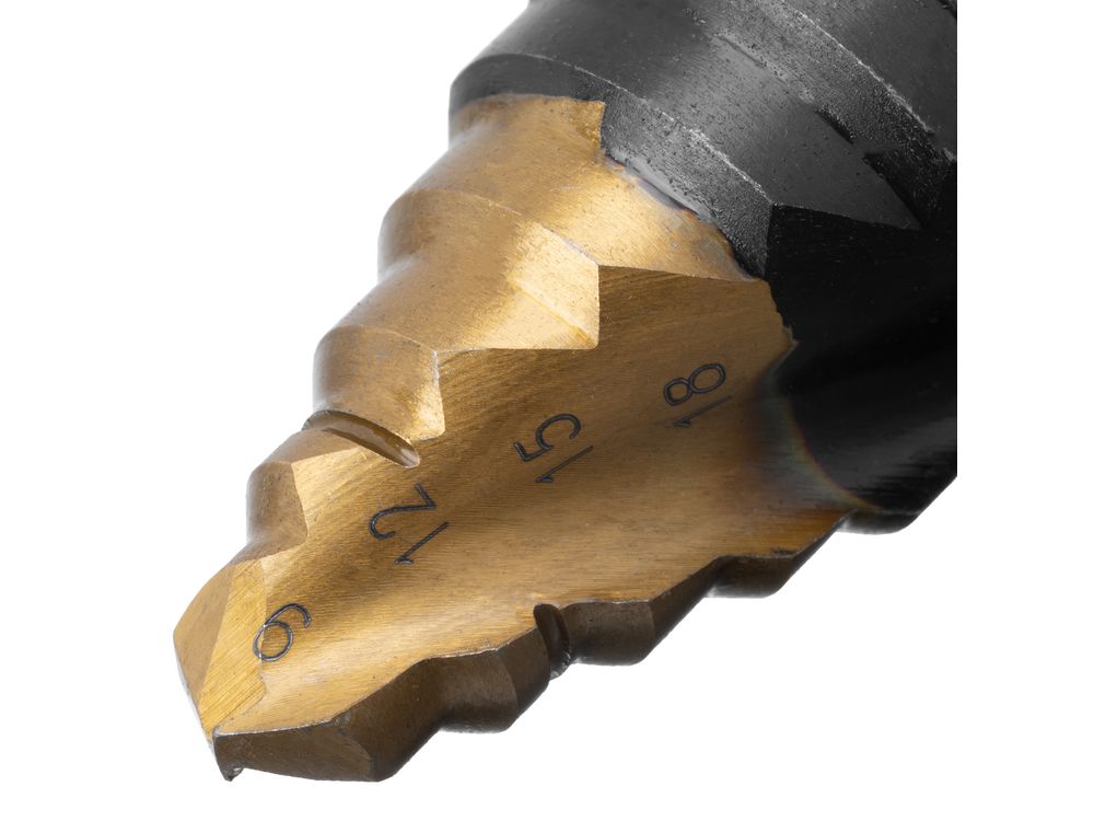 Сверло ступенчатое, 9-12-15-18-21-24-27-30-33-36 мм, Р6М5, 6-гр. хвостовик