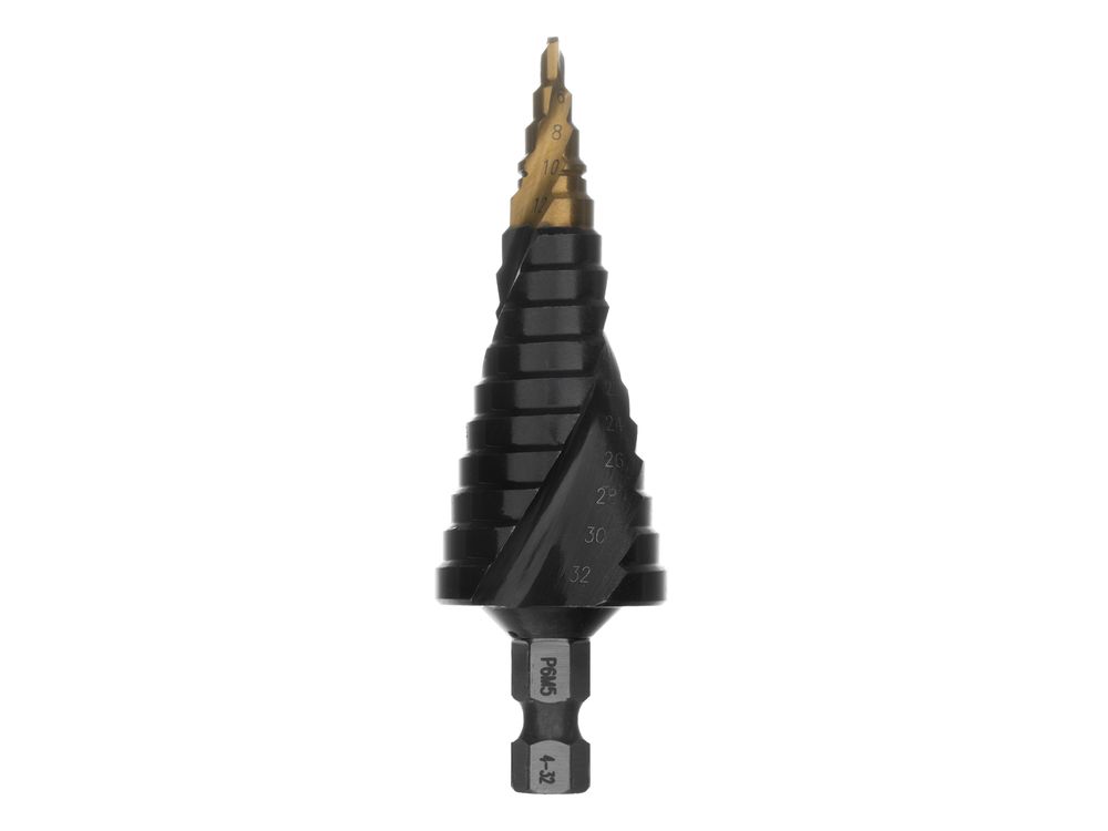Сверло ступенчатое, 4-6-8-10-12-14-16-18-20-22-24-26-28-30-32 мм, Р6М5, 6-гр. хвостовик