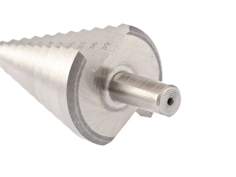 Ступенчатое сверло по металлу Барс 72363 из стали P6M5, с трехгранным хвостовиком, используется для получения в металлических заготовках отверстий диаметром 4-6-9-12-15-18-21-24-27-30-33-36-39 мм. Заменяет целый набор традиционных спиральных сверл. Оснастка позволяет снять фаску во время сверления, получив отверстие с ровными краями под гайку или болт. Сверло будет полезно для выполнения монтажно-сборочных работ.