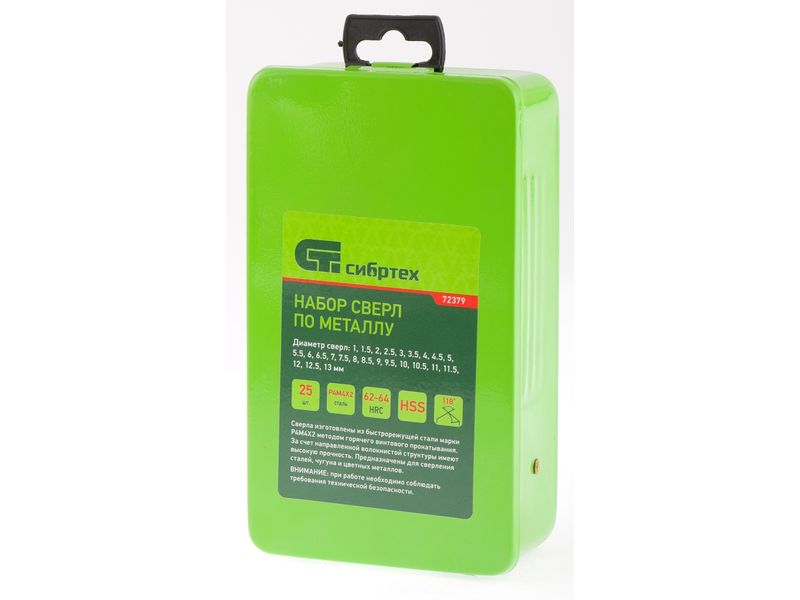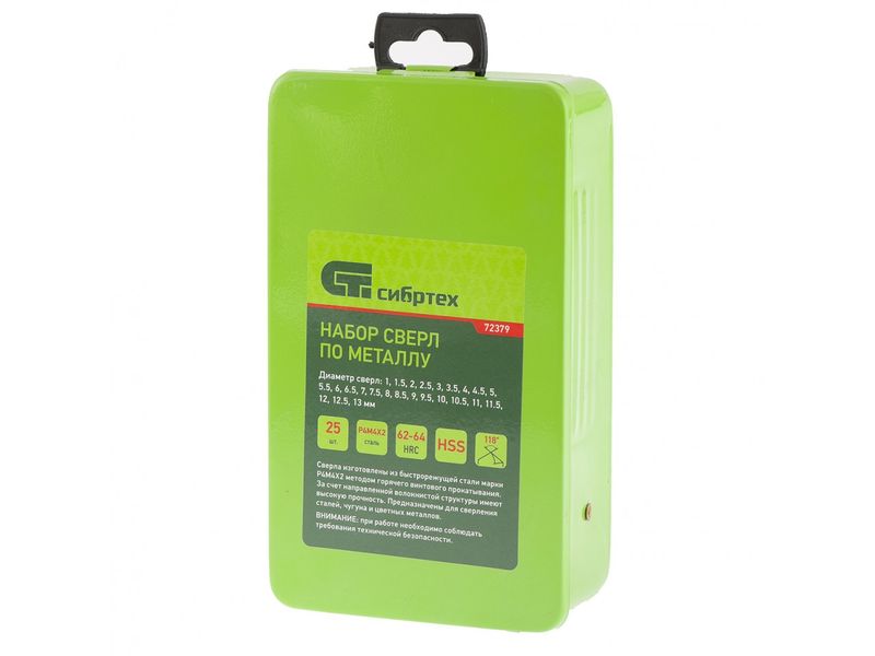 Набор сверл по металлу, 1-13 мм (через 0,5 мм), 25 шт., HSS, в металлической коробке-424
