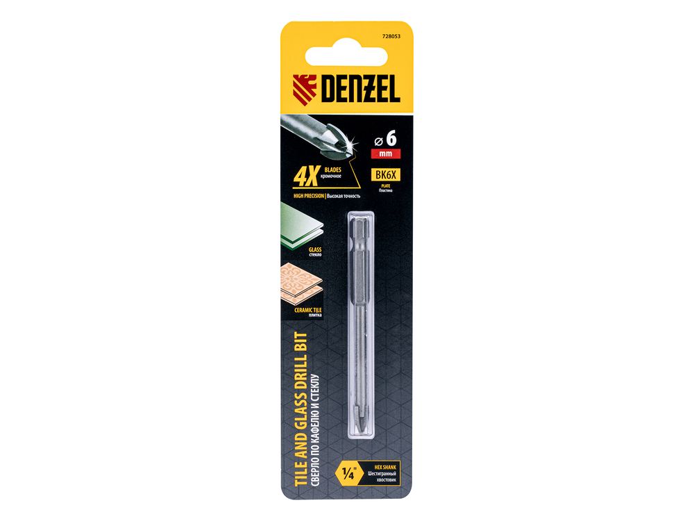 Сверло Denzel 728053 диаметром 6 мм, с крестовой пластиной и шестигранным хвостовиком, используется для сверления керамической плитки, стекла и других материалов с помощью дрели или шуруповерта. Четырехкромочная режущая пластина обеспечивает высокую скорость засверливания. Оснастка выдерживает высокие нагрузки и подходит для интенсивного профессионального использования.