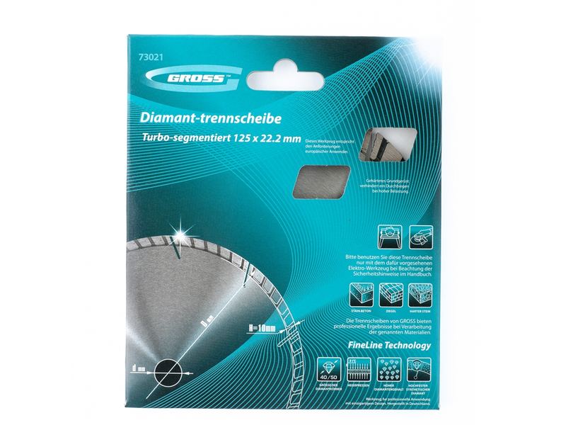 Алмазный турбо-сегментный диск Gross 73021 диаметром 125 х 22,2 мм для сухого резания — оснастка для УШМ со скоростью вращения до 12250 об/мин, предназначенная для отрезных работ. Универсальный диск с турбированной рабочей частью можно использовать для резки камня, гранита и кирпича, свежего бетона, а также слабоармированного железобетона. Он подходит для профессионального использования.