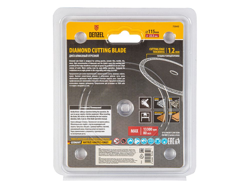 Алмазный диск ТМ Denzel Сплошной арт 73043, ф115 х 22,2 мм, предназначен для мокрого резания мрамора, керамогранита и керамическую плитки, камня. Устанавливается на УШМ (болгарку) или плиткорез с посадочным диаметром 22,2 мм. Высокая концентрация алмазов и супертонкая рабочая часть диска обеспечивает идеальную частоту кромок и высокую скорость реза.Диск произведен по технологии горячего прессования с увеличенной шириной режущей кромки (10мм) подходит для профессионального использования и больших объемов работ.