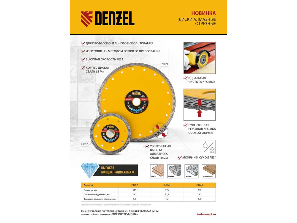 Долговечность — ширина алмазного слоя увеличена до 10 мм, поэтому диск изнашивается медленно и выдерживает профессиональное использование.