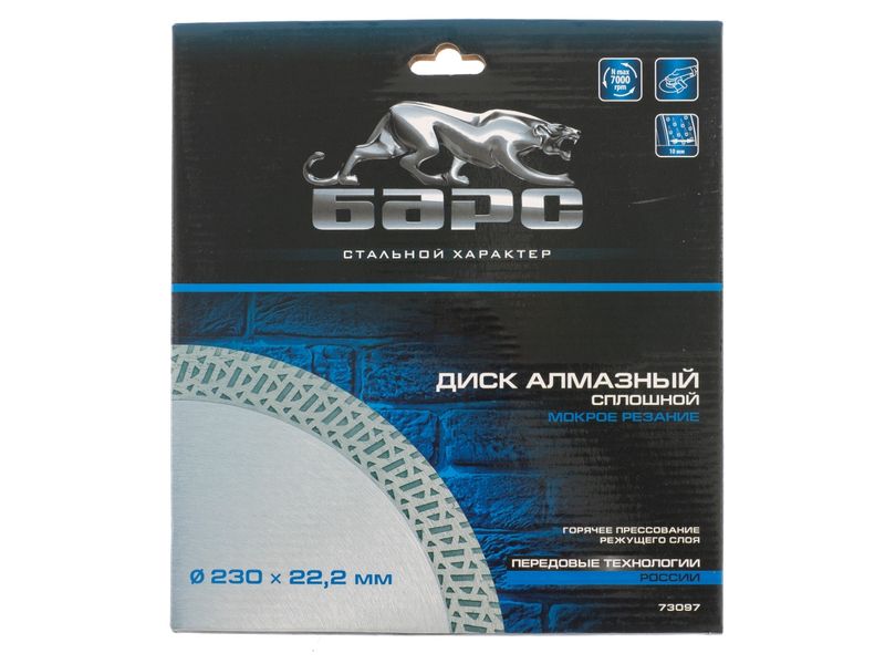 Тонкий сплошной алмазный диск Барс ф230х22,2 мм 73097 с особой формой рабочей части применяется как для сухого, так и мокрого резания гранита и керамогранита, плитки, кафеля, мрамора, искусственного и натурального камня с помощью УШМ или плиткореза. Уменьшенная толщина диска позволяет снизить нагрузку на рабочий инструмент при резке керамогранита и других твердых материалов. Диск предназначен для профессиональной эксплуатации. Использование водяного охлаждения увеличивает ресурс диска и снижает вероятность получения сколов.