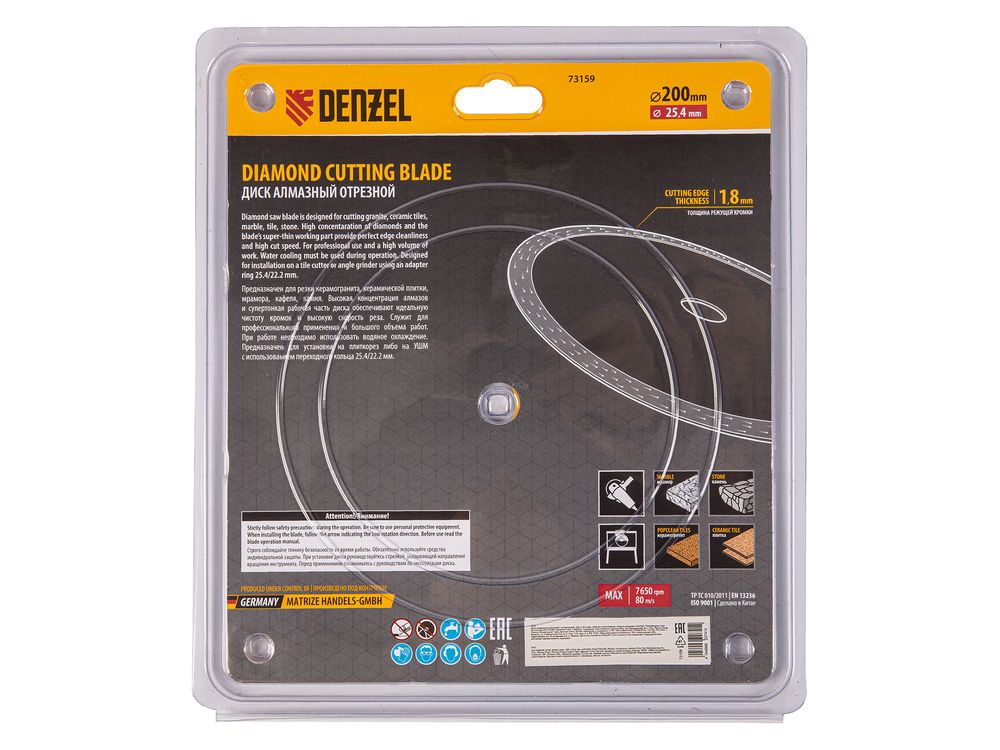 Алмазный диск ТМ Denzel Сплошной арт 73159, ф200 х 25,4 мм, предназначен для мокрого резания мрамора, керамогранита и керамическую плитки, камня. Устанавливается на плиткорез или УШМ (болгарку) с посадочным диаметром 25,4 мм. Высокая концентрация алмазов и супертонкая рабочая часть диска обеспечивает идеальную частоту кромок и высокую скорость реза.Диск произведен по технологии горячего прессования с увеличенной шириной режущей кромки (10мм) подходит для профессионального использования и больших объемов работ.