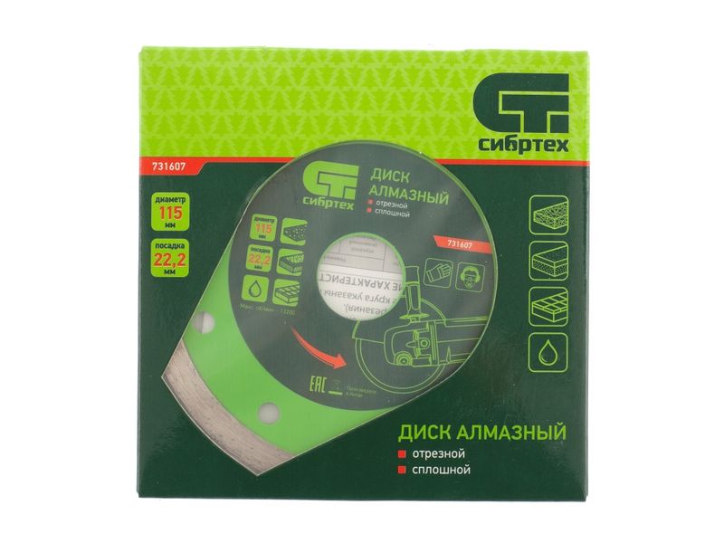 Алмазный отрезной сплошной диск Сибртех 731607 диаметром 115 х 22,2 мм применяется для мокрой резки керамогранитной, керамической плитки, а также мрамора и камня. Используется в качестве оснастки для болгарок и плиткорезов с посадочным диаметром 22,2 мм. Диск обладает хорошим рабочим ресурсом и рассчитан на долгую службу. Рез материалов необходимо проводить с использованием водяного охлаждения.