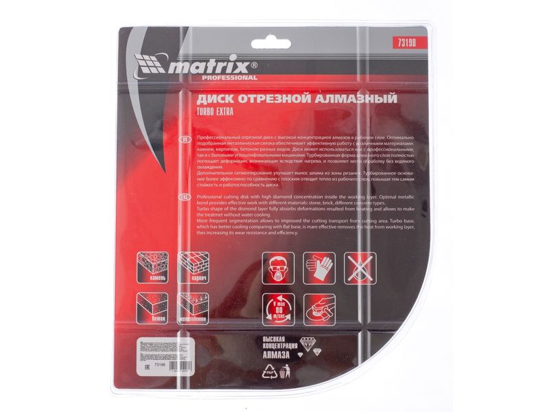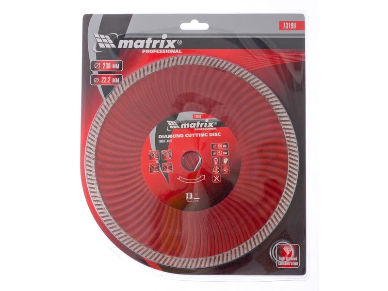 Отрезной алмазный диск Matrix Turbo Extra 73198, 230 х 22,2 мм, используется для сухой резки бетона, железобетона, кирпича, тротуарной плитки, шлакоблока и камня. Он устанавливается на углошлифовальные машины с посадочным диаметром 22,2 мм. Обеспечивает высокую скорость реза, поэтому подходит для интенсивного применения.