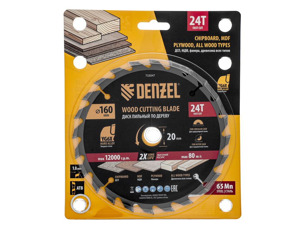 Пильный диск Denzel 733047 диаметром 160 x 20 мм, с 24 зубьями, предназначен для продольного и поперечного распила твердой и мягкой древесины, фанеры, МДФ, ДСП. 24 зуба типа ATB с режущими пластинами оптимальной геометрии обеспечивают быстрый рез. Режущие пластины из твердого сплава YG6X сохраняют рабочие свойства при интенсивном использовании. Диск устанавливается на циркулярную, торцовочную пилу или на распиловочный станок. В комплект поставки входит переходное кольцо с 20 на 16 мм, что позволяет изменить посадочный размер и расширяет возможности использования диска.