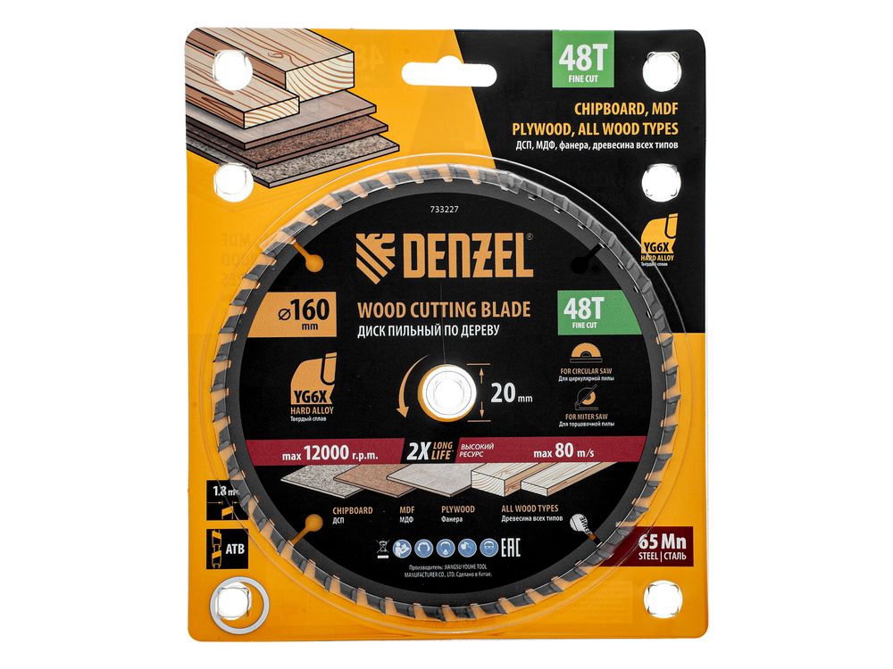 Пильный диск Denzel 733227 диаметром 160 x 20 мм, с 48 зубьями, предназначен для продольного и поперечного распила твердой и мягкой древесины, фанеры, МДФ, ДСП. 48 зубьев типа ATB с режущими пластинами оптимальной геометрии обеспечивают качественный рез. Тип реза — стандартный. Режущие пластины из твердого сплава YG6X сохраняют рабочие свойства при интенсивном использовании. Диск устанавливается на циркулярную, торцовочную пилу или на распиловочный станок. В комплект поставки входит переходное кольцо с 20 на 16 мм, что позволяет изменить посадочный размер и расширяет возможности использования диска.