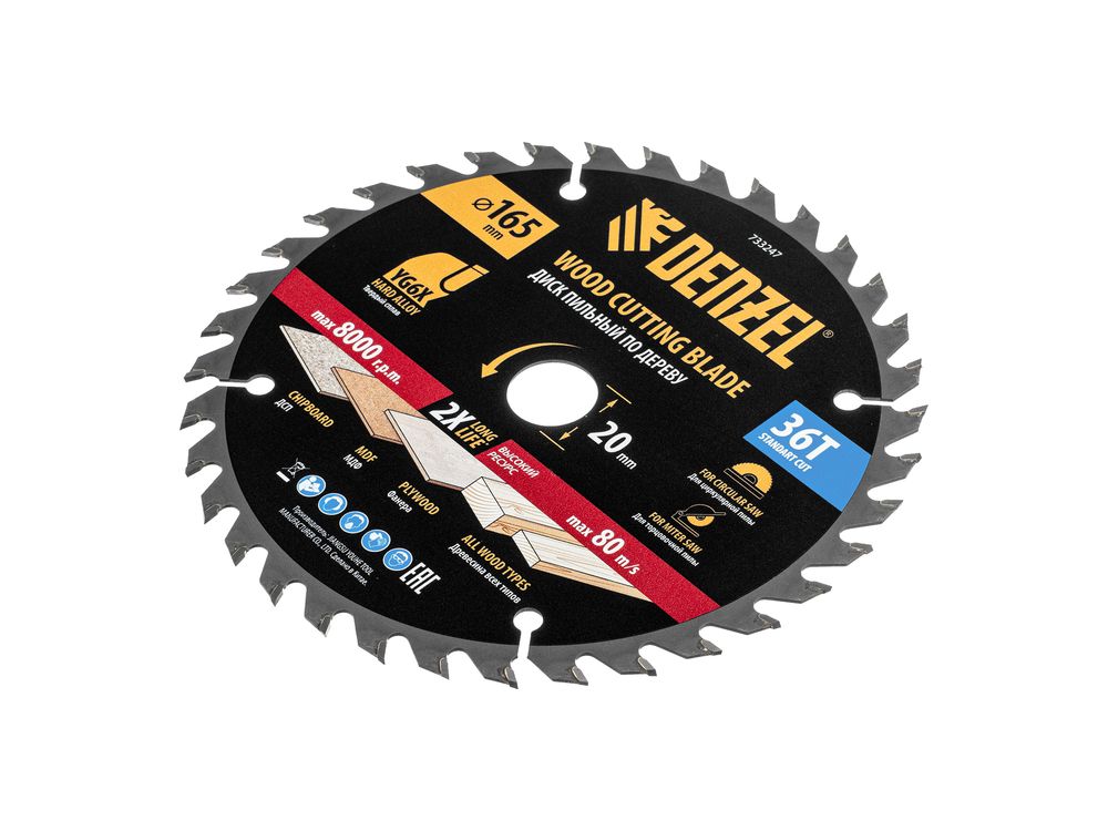 Пильный диск Denzel 733247 диаметром 165 x 20 мм, с 36 зубьями, предназначен для продольного и поперечного распила твердой и мягкой древесины, фанеры, МДФ, ДСП. 36 зубьев типа ATB с режущими пластинами оптимальной геометрии обеспечивают качественный рез. Тип реза — стандартный. Режущие пластины из твердого сплава YG6X сохраняют рабочие свойства при интенсивном использовании. Диск устанавливается на циркулярную, торцовочную пилу или на распиловочный станок. В комплект поставки входит переходное кольцо с 20 на 16 мм, что позволяет изменить посадочный размер и расширяет возможности использования диска.