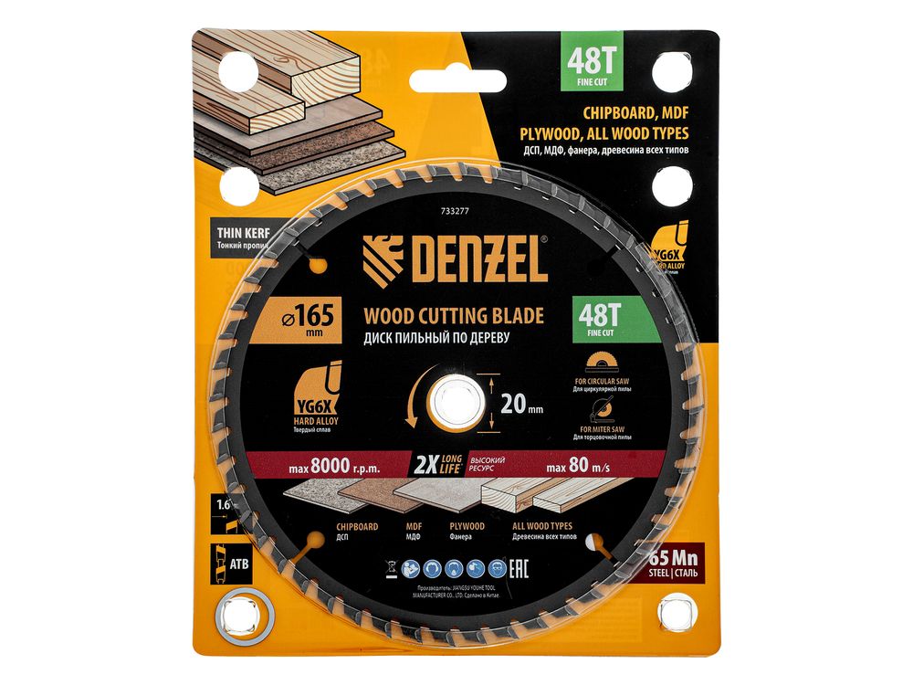 Тонкий пильный диск Denzel 733277 диаметром 165 x 20 мм, с 48 зубьями, устанавливается на циркулярную, торцовочную пилу или распиловочный станок и предназначен для выполнения работ по дереву. Подходит для распиливания древесины любого типа, а также фанеры, ДСП, МДФ. Зубья типа ATB обеспечивают высокое качество и скорость как продольного, так и поперечного распила. Тип реза — стандартный. Толщина диска уменьшена, что повышает производительность и снижает нагрузку на инструмент. На зубья напаяны твердосплавные пластины, длительное время сохраняющие режущую способность. Пластины из твердого сплава YG6X прошли многоступенчатую заточку, что позволило достичь оптимальной геометрии и максимальной эффективности распиловки.