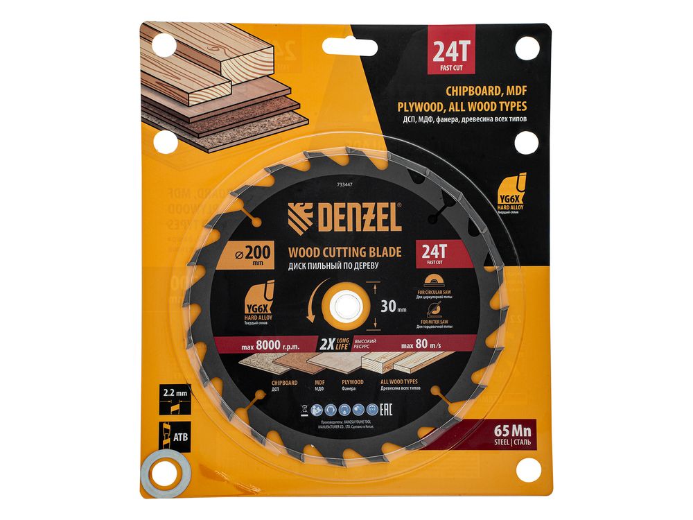 Пильный диск Denzel 733447 диаметром 200 x 30 мм, с 24 зубьями, предназначен для продольного и поперечного распила твердой и мягкой древесины, фанеры, МДФ, ДСП. 24 зуба типа ATB с режущими пластинами оптимальной геометрии обеспечивают быстрый рез. Режущие пластины из твердого сплава YG6X сохраняют рабочие свойства при интенсивном использовании. Диск устанавливается на циркулярную, торцовочную пилу или на распиловочный станок. В комплект поставки входит переходное кольцо с 30 на 20 мм, что позволяет изменить посадочный размер и расширяет возможности использования диска.
