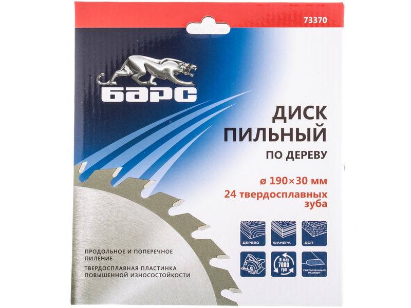 Пильный диск Барс 73370 диаметром 190 х 30 мм, с 24 зубьями, — оснастка для циркулярных и торцовочных пил. За счет универсального типа зуба АТВ он быстро распиливает древесину мягких и твердых пород, фанеру, МДФ и ДСП как в продольном, так и в поперечном направлении. Диск выдерживает интенсивное применение и рекомендован для проведения работ большого объема.