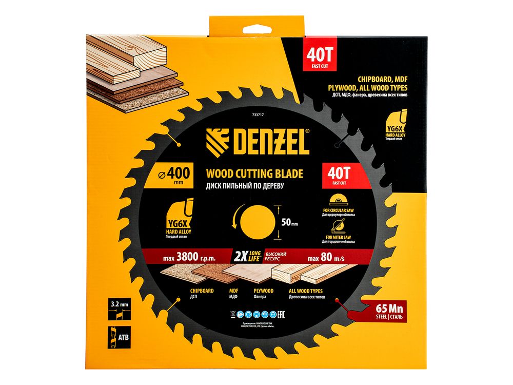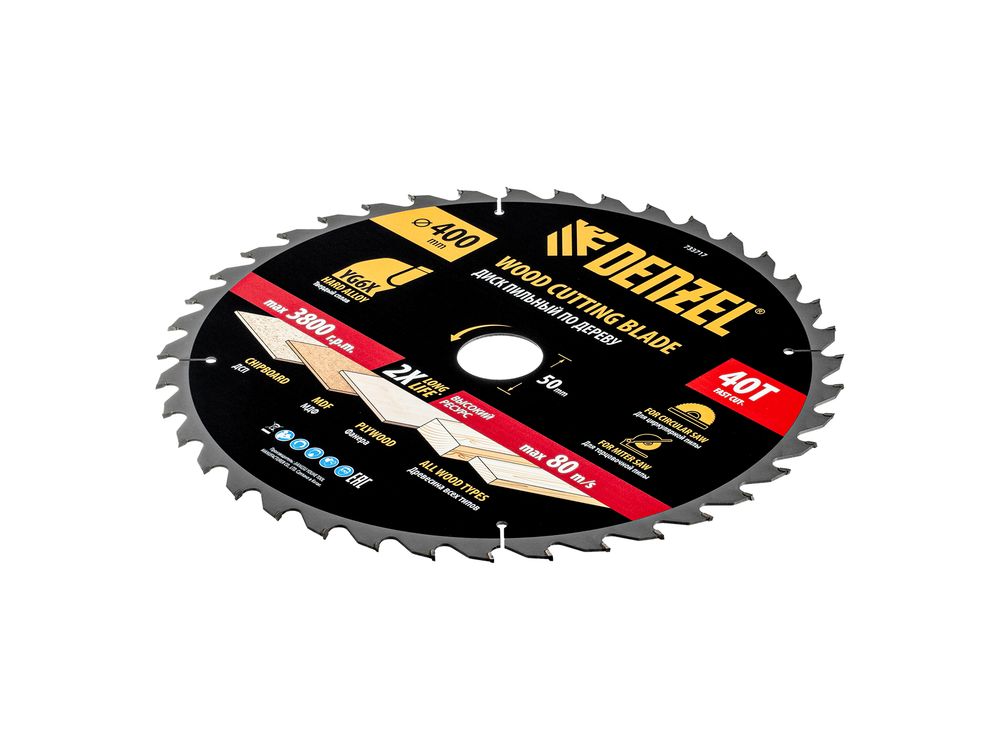 Пильный диск Denzel 733717 диаметром 400 x 50 мм, с 40 зубьями, предназначен для продольного и поперечного распила твердой и мягкой древесины, фанеры, МДФ, ДСП. 40 зубьев типа ATB с режущими пластинами оптимальной геометрии обеспечивают качественный рез. Тип реза — стандартный. Режущие пластины из твердого сплава YG6X сохраняют рабочие свойства при интенсивном использовании. Диск устанавливается на циркулярную, торцовочную пилу или на распиловочный станок. В комплект поставки входит переходное кольцо с 50 на 32 мм, что позволяет изменить посадочный размер и расширяет возможности использования диска.