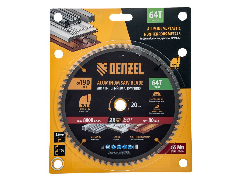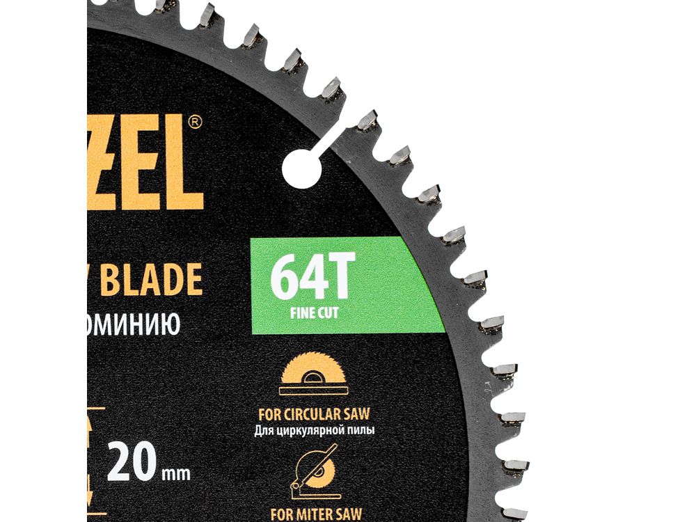 Пильный диск Denzel 733767 диаметром 190 x 20 мм, с 64 зубьями, предназначен для точного распиливания заготовок из алюминия, пластика, цветных металлов. Устанавливается на циркулярную или торцовочную пилу, также возможно использование с распиловочным станком. Зубья трапециевидно-плоского типа (TCG) с отрицательным углом заточки обеспечивают ровный рез без сколов. В комплект поставки входит переходное кольцо 20/16 мм, позволяющее изменить посадочный диаметр при необходимости.