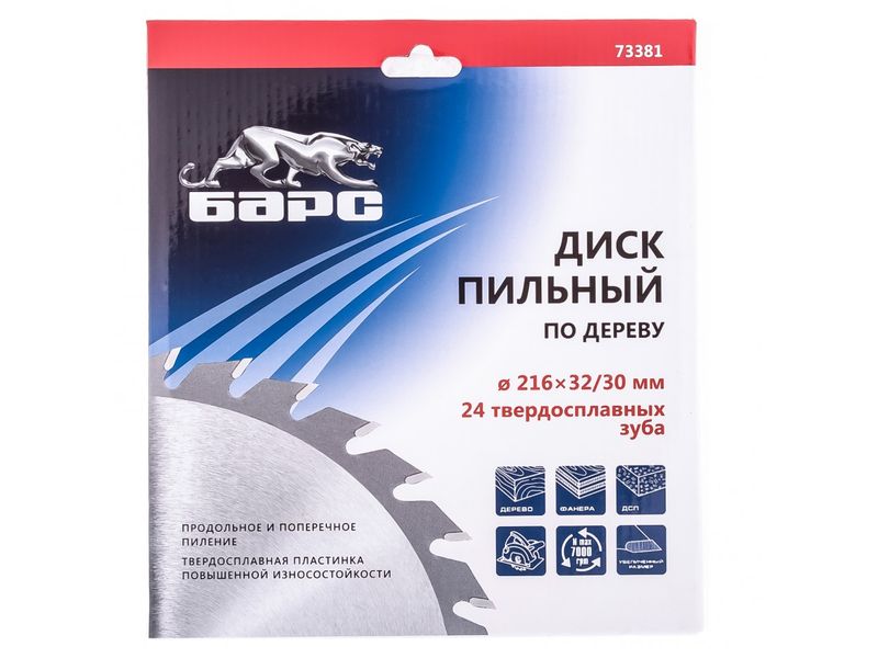 Пильный диск Барс 73381 диаметром 216 х 32 мм, с 24 зубьями и кольцом 32/30 мм, предназначен для быстрого пиления древесины мягких и твердых пород, ДСП, МДФ и фанеры. Тип зубьев АТВ и оптимально подобранный угол зуба позволяют производить как продольный, так и поперечный распил. Диск используется совместно с торцовочными и циркулярными пилами с посадкой 32 мм. В комплект входит переходное кольцо на диаметр 30 мм, расширяющее возможности применения оснастки. Диск подходит для интенсивной эксплуатации и может использоваться в профессиональной сфере.