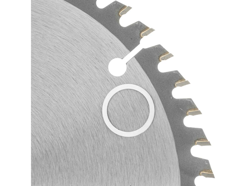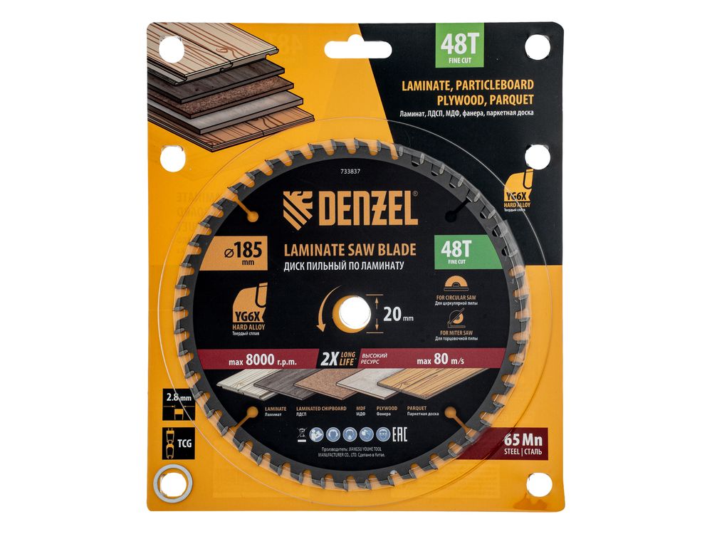 Пильный диск Denzel 733837 диаметром 185 x 20 мм, с 48 зубьями, используется для распиливания ламината, ЛДСП, МДФ, фанеры, паркетной доски. 48 трапециевидно-плоских зубьев с положительным углом заточки позволяют эффективно решать поставленные задачи, обеспечивая чистый рез. Тип реза — стандартный. Диск устанавливается на циркулярную или торцовочную пилу, а также на распиловочный станок. Можно установить оснастку на инструмент с другим посадочным диаметром — для этого предусмотрено переходное кольцо 20/16 мм.