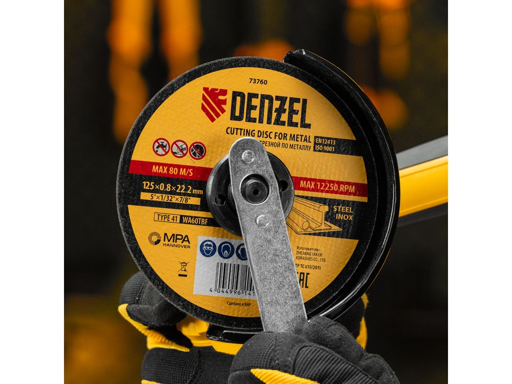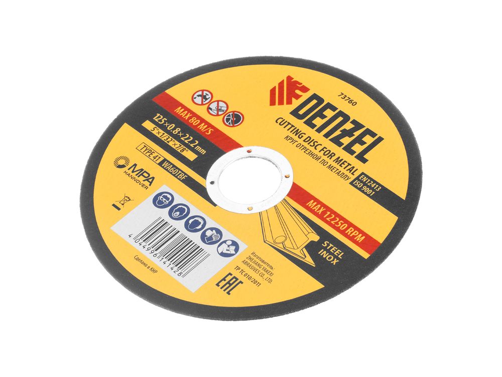 Отрезной круг по металлу Denzel WA60TBF 73760 диаметром 125 мм и толщиной 0,8 мм устанавливается на углошлифовальную машину с посадочным размером 22,2 мм. Предназначен для сухого резания углеродистых и нержавеющих сталей. Максимальная частота вращения составляет 12250 об/мин. Круг пригодится в слесарной мастерской.