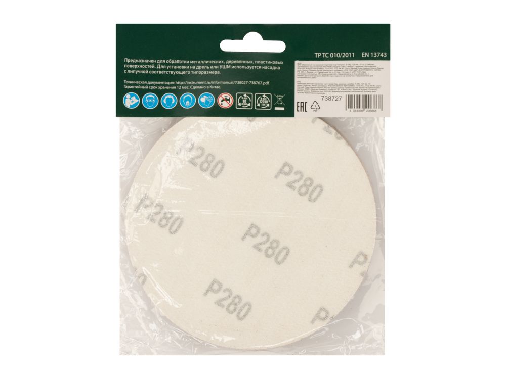 Купить Круг абразивный на ворсовой подложке под липучку, P 280, 125 мм, 10 шт