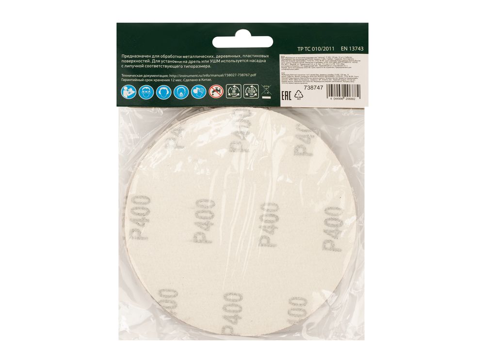 Круг абразивный на ворсовой подложке под липучку, P 400, 125 мм, 10 шт-295