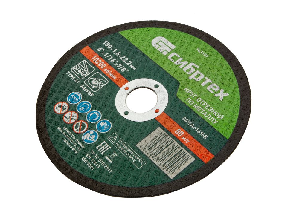 Отрезной круг по металлу Сибртех 84%A+16%B 743197 размером 150 х 1,6 мм устанавливается на фланец ручной углошлифовальной машины с посадочным размером 22,2 мм. Предназначен для резки углеродистых сталей. Круг пригодится частному мастеру для проведения ремонтных работ дома или в гараже.