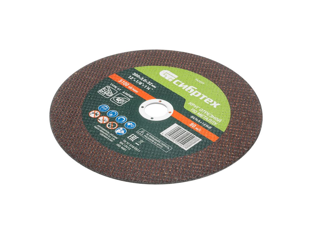 Отрезной круг по металлу Сибртех 84%A+16%B 743297 диаметром 300 мм и толщиной 3,0 мм устанавливается на фланец ручной углошлифовальной машины или станка с посадочным размером 32 мм. Предназначен для работы по металлу, оптимален для резания углеродистых сталей. Максимальная частота вращения составляет 5100 об/мин. Пригодится в мастерской, будет также полезен в быту.