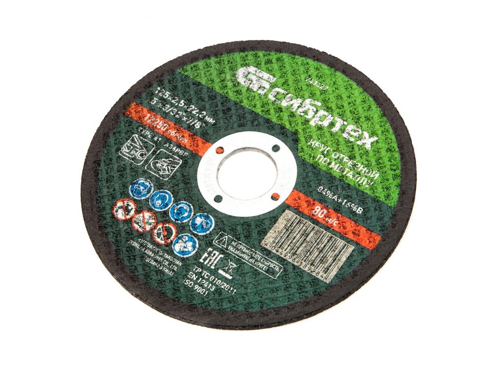 Отрезной круг по металлу Сибртех 84%A+16%B 743327 размером 125 х 2,5 мм устанавливается на фланец ручной углошлифовальной машины с посадочным размером 22,2 мм. Предназначен для резки углеродистых сталей. Круг пригодится частному мастеру для проведения ремонтных работ дома или в гараже.