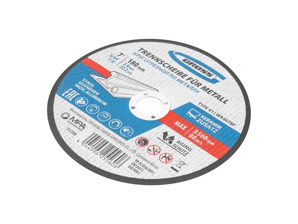 Отрезной круг по металлу Gross WA46TBF 74386 диаметром 180 мм и толщиной 2 мм устанавливается на фланец углошлифовальной машины с посадочным размером 22,2 мм. Предназначен для сухого резания углеродистых и нержавеющих сталей, а также алюминия и чугуна. Рекомендованная максимальная частота вращения составляет 8500 об/мин. Круг выдерживает высокие нагрузки и подходит для профессионального использования.