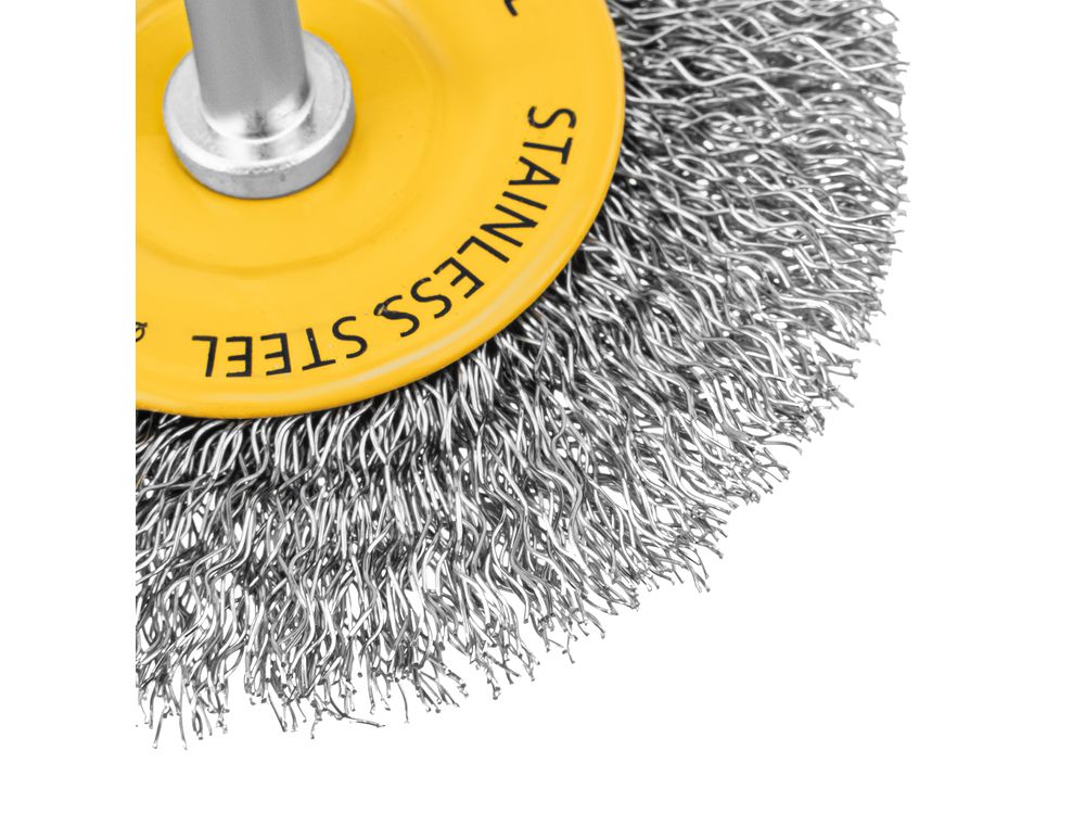 Купить Щетка для дрели, 75 мм, Плоская, со шпилькой, нержавеющая витая проволока
