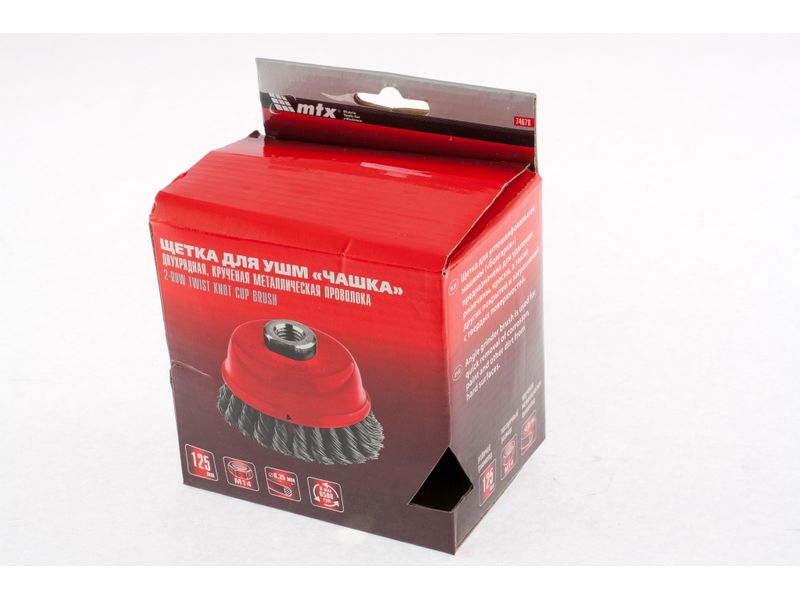 Двухрядная щетка Matrix «Чашка» 74678 диаметром 125 мм, с щетиной из крученой проволоки толщиной 0,35 мм, устанавливается на вал углошлифовальной машины с помощью гайки М14. Рекомендованная максимальная скорость вращения — до 6500 об/мин. Оснастка оптимальна для грубой (черновой) обработки: снятия старого слоя лакокрасочного покрытия и ржавчины, удаления загрязнений, зачистки сварных швов. Эффективно справляется с зачисткой больших поверхностей, подходит для выполнения работ повышенной сложности.