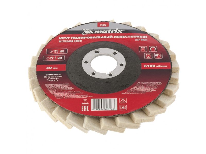 Купить Круг полировальный лепестковый из натурального войлока 125 х 22,2 мм