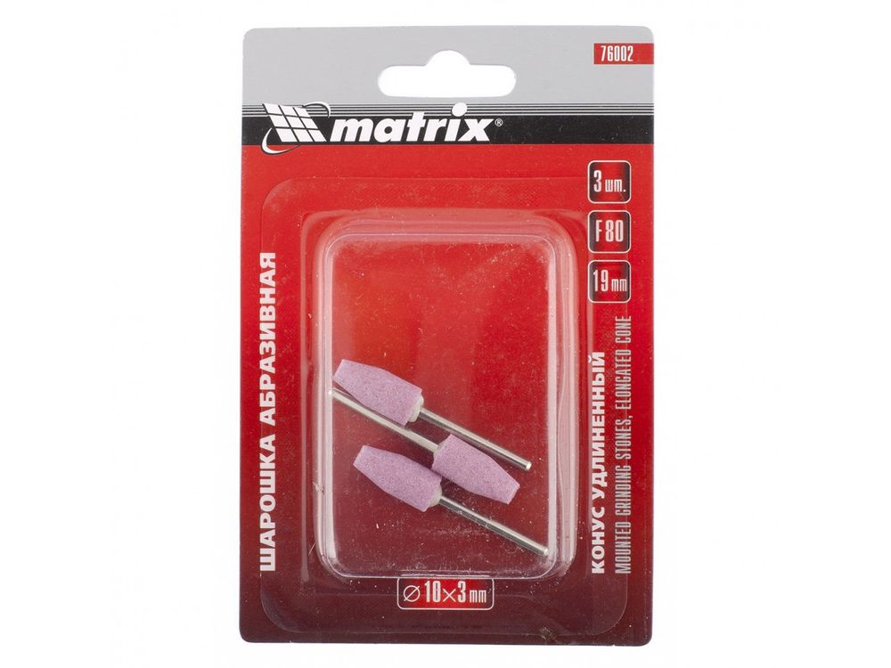 Шарошка абразивная Matrix 76002 размером 10 х 19 мм, с цилиндрическим хвостовиком 3 мм, 3 шт., имеет форму удлиненного конуса с абразивом зернистостью F80. Она устанавливается в качестве оснастки на дрель или шуруповерт. Позволяет зачищать отверстия, снимать фаски и удалить заусенцы. Шарошка рассчитана на бытовое и профессиональное применение.