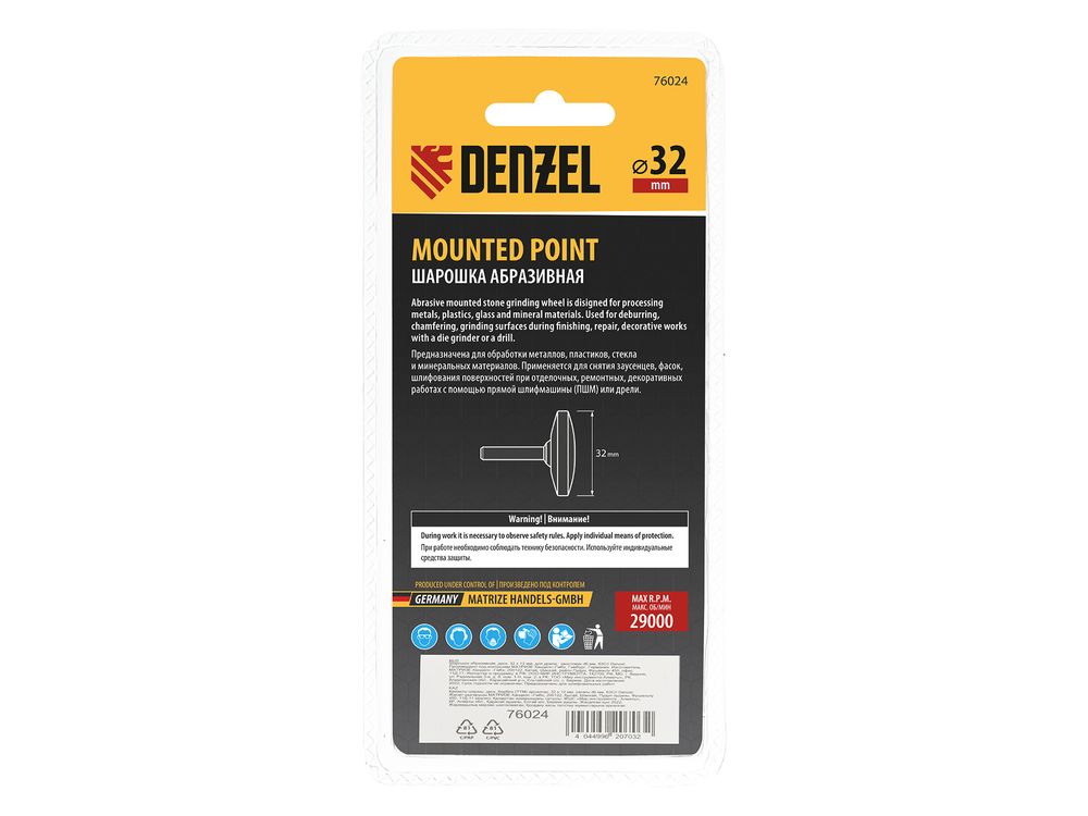 Шарошка абразивная, диск, 32 x 12 мм, для дрели, хвостовик d6 мм, 63С-955