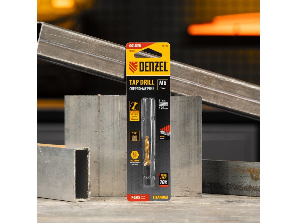 Сверло-метчик Denzel 76722 из стали P6M5 предназначено для получения глухих и сквозных отверстий в металлических заготовках с одновременным нарезанием правой резьбы M6 с шагом 1,0 мм. Позволяет существенно сэкономить время работы, объединив две операции в одну. Угол заточки 135° оптимален для работы с чугуном, сталью, алюминием, медью, бронзой. Ресурс оснастки увеличен в 10 раз по сравнению с аналогичными моделями из углеродистой стали.