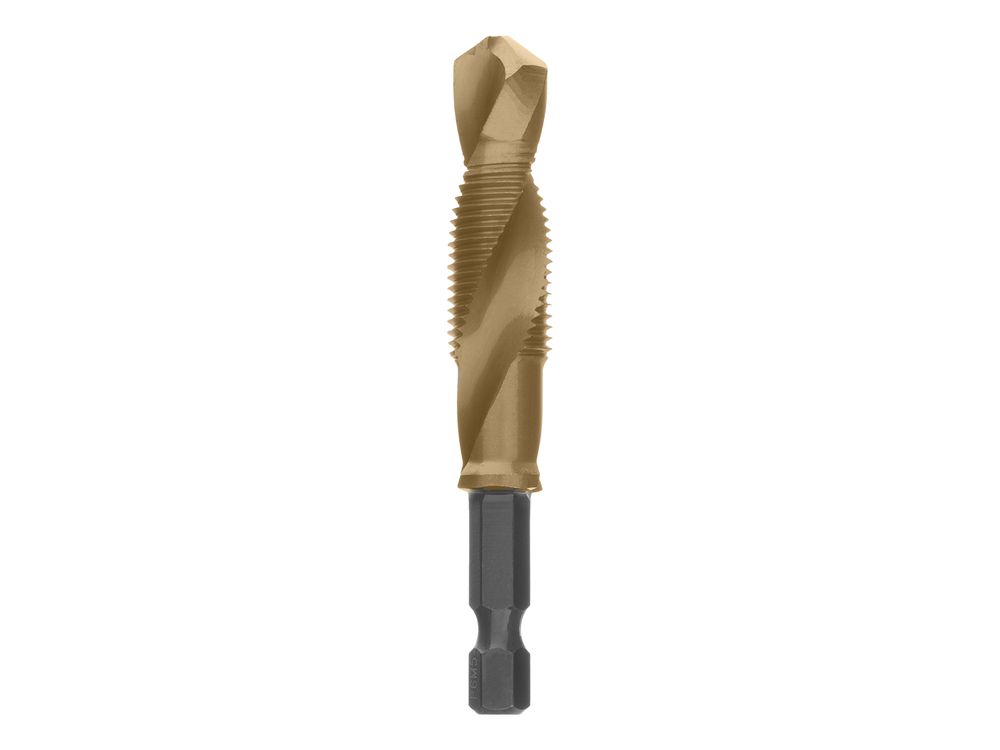 Долговечность — нитридтитановое покрытие защищает от повреждений и уменьшает трение, что увеличивает устойчивость сверла-метчика к износу.
