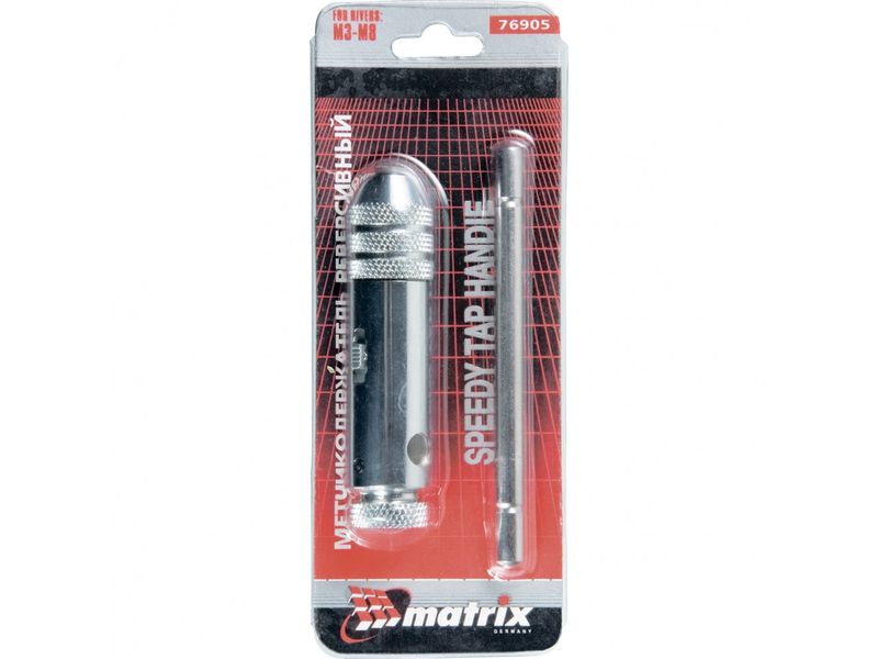 Хромированный вороток Matrix 76905 с трещоткой подходит для метчиков с резьбой М3, М4, М5, М6, М7 и М8 и используется для ручного нарезания внутренней резьбы в отверстиях и цилиндрических деталях. Пригодится при проведении ремонта резьбовых соединений, будет полезен в мастерской или гараже.