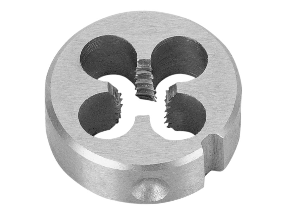 Быстрорежущая сталь, из которой изготовлена плашка, обеспечивает ее износостойкость и высокую скорость работы.