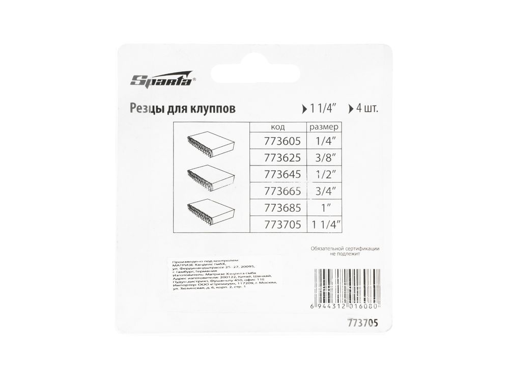 Резцы для клуппов Sparta 773705, 4 шт. в упаковке, — сменные режущие элементы для нарезания наружной правой резьбы диаметром 1 1/4 на трубах. Применяются для прокладки трубопроводов различного назначения.